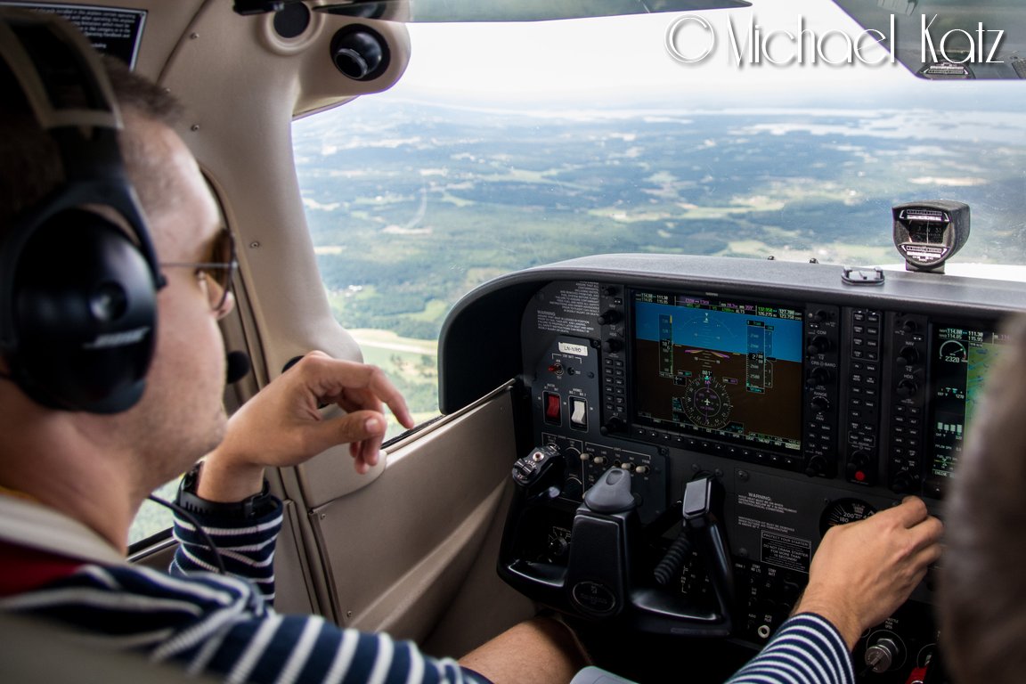 Foregående bilde Neste bilde IMG_1935_edit Anders gjør flyet klart for landing på Stockholm Skavsta. © 2016 Michael Katz